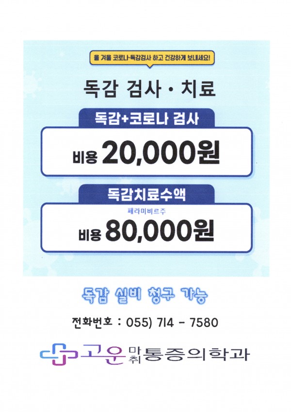 독감 A형, B형을 수액으로 치료가 가능합니다.